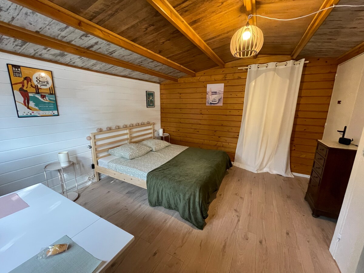 Chambre tout confort dans un chalet indépendant de la maison des propriétaires, Armelle et Christophe. Vous passerez un séjour paisible et calme, entre ville et campagne. Le logement est équipé d’un lit en 160/200, d’un coin repas, d’une climatisation réversible, d’une salle de bain et de toilettes séparés.