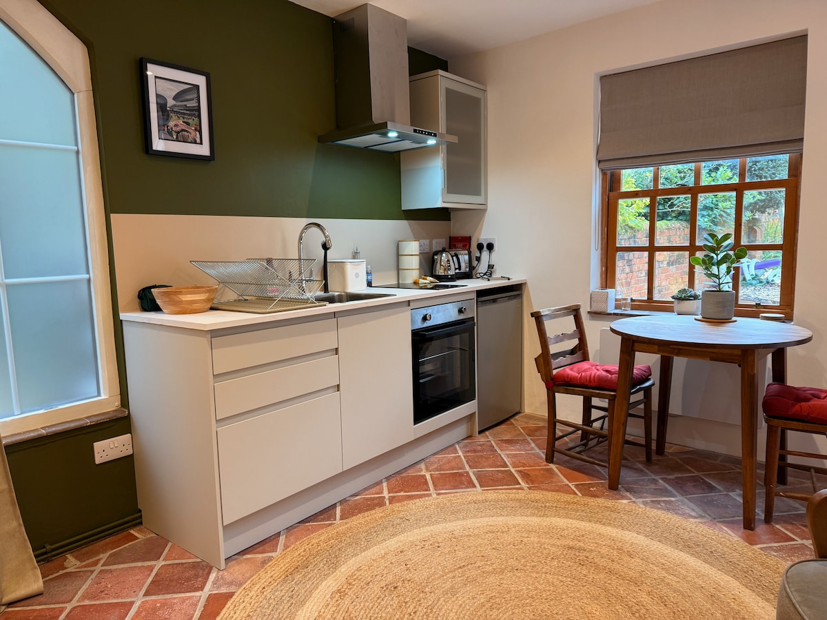 Self contained double en-suite bedroom with it's own private entrance. It is a bright airy room with quirky port hole windows. Bedroom features a comfy double bed, hanging and drawer space, tv, tea tray, mini fridge and wifi. En-suite features a large shower, basin and toilet. Situated on a quiet no-through road minutes walk from a small village and lots of free on-street parking. Please note as this is a fully self contained unit there is no access to kitchen facilities.