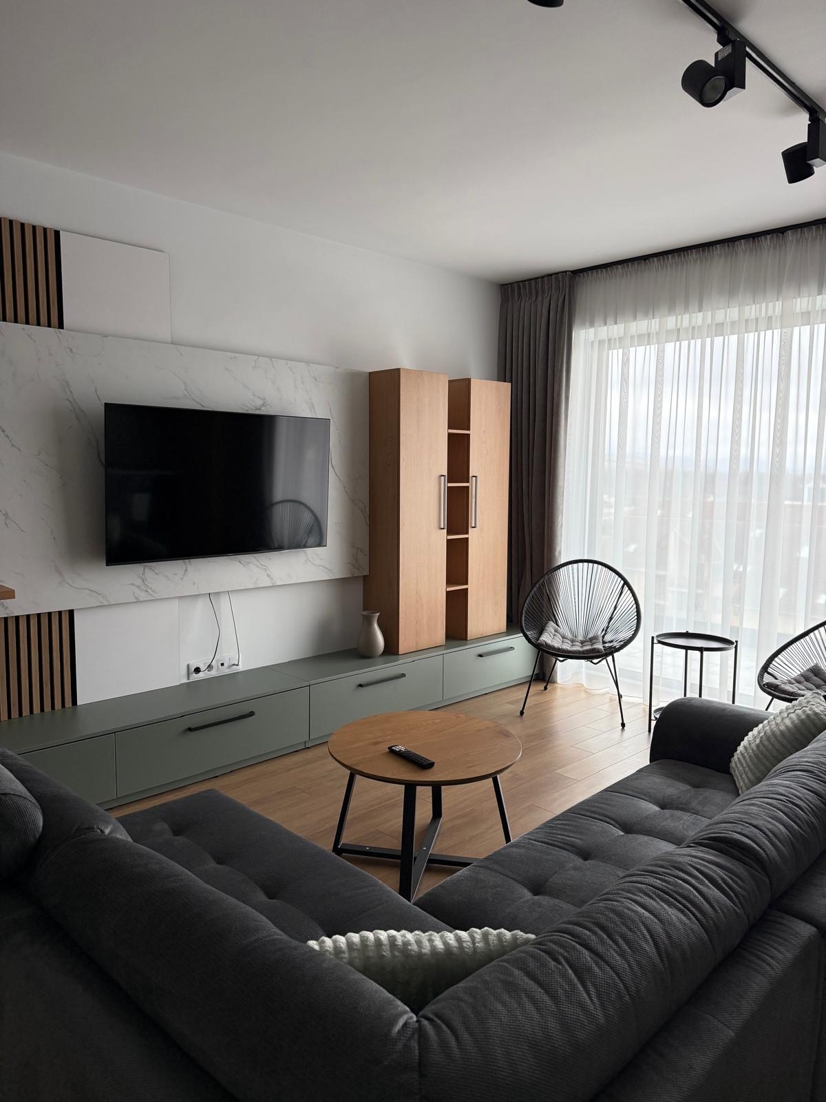 Nowa, stylowa i gościnna przestrzeń, idealna na relaksujący pobyt! Znajduje się w kompleksie mieszkalnym w Bistrita, około 7 min (1,2 km) od centrum miasta. Salon otwiera się na nowoczesną kuchnię zapewniającą ciepłą i przyjazną przestrzeń. Wyposażona w dwie sypialnie, z których jedna jest wyposażona we własną łazienkę. W zestawie znajduje się oddzielna łazienka z wanną idealną na relaksujące chwile. Dostęp do tarasu z panoramicznym widokiem. Posiada prywatny parking podziemny.