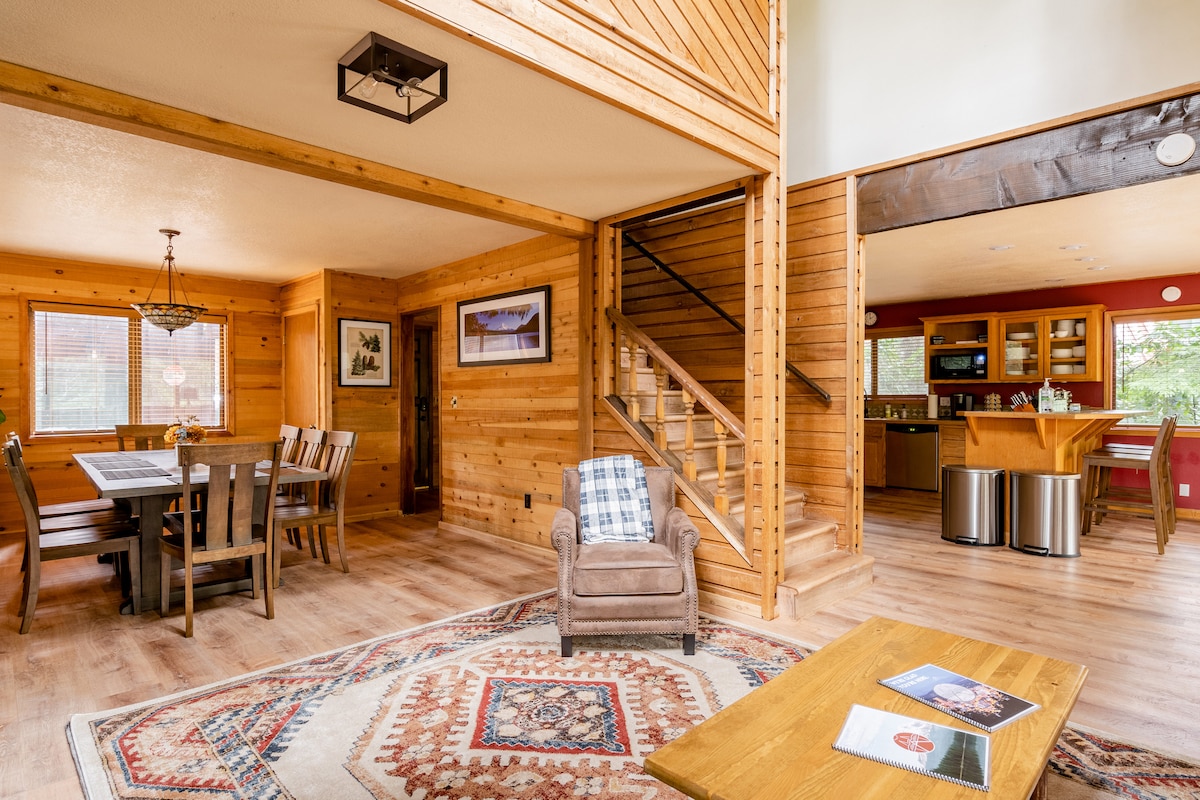 ŚWIEŻO po remoncie! Teraz jest miejsce dla 12 osób! Nasz wysoki domek w kształcie litery A z oknami od podłogi do sufitu zaprasza do spokojnego, powolnego życia na wsi. Usytuowany spokojnie nad gajem Ponderosas z zapierającym dech w piersiach widokiem na wzgórza Columbia i majestatyczną Mount Hood, oferuje ucieczkę od zgiełku miejskiego życia i sprawi, że poczujesz się jak w bardzo potrzebnym ciszy. Ciesz się rozgwieżdżonym niebem na naszym przestronnym tarasie lub powolnym delektowaniem się Pinot z pobliskiej winnicy.