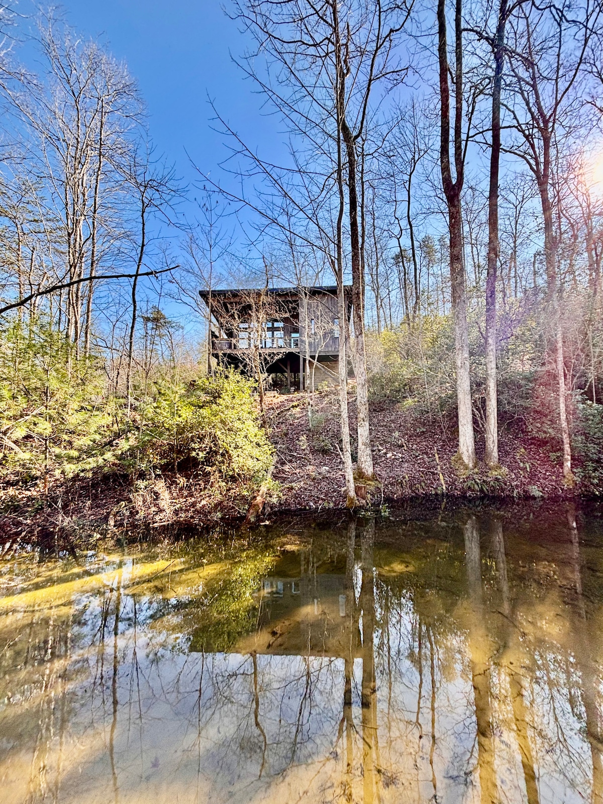 Moss + Oak ✨ Nowoczesna kabina Zen | Creekside Getaway w pobliżu centrum Blue Ridge Ucieknij do naszej spokojnej, inspirowanej zen chatki położonej nad potokiem i otoczonej szlakami przyrodniczymi. Zrelaksuj się w prywatnym jacuzzi, odpocznij w przytulnym lofcie filmowym lub wybierz się na zwiedzanie uroku Downtown Blue Ridge i pobliskiego jeziora! 🌟 Najważniejsze elementy: prywatne jacuzzi, gry planszowe (szachy, Connect 4, Jenga), w pełni wyposażona kuchnia, bar z kawą i szybkie Wi-Fi. Kliknij ♥️, aby zapisać ten pobyt i łatwo go później znaleźć.