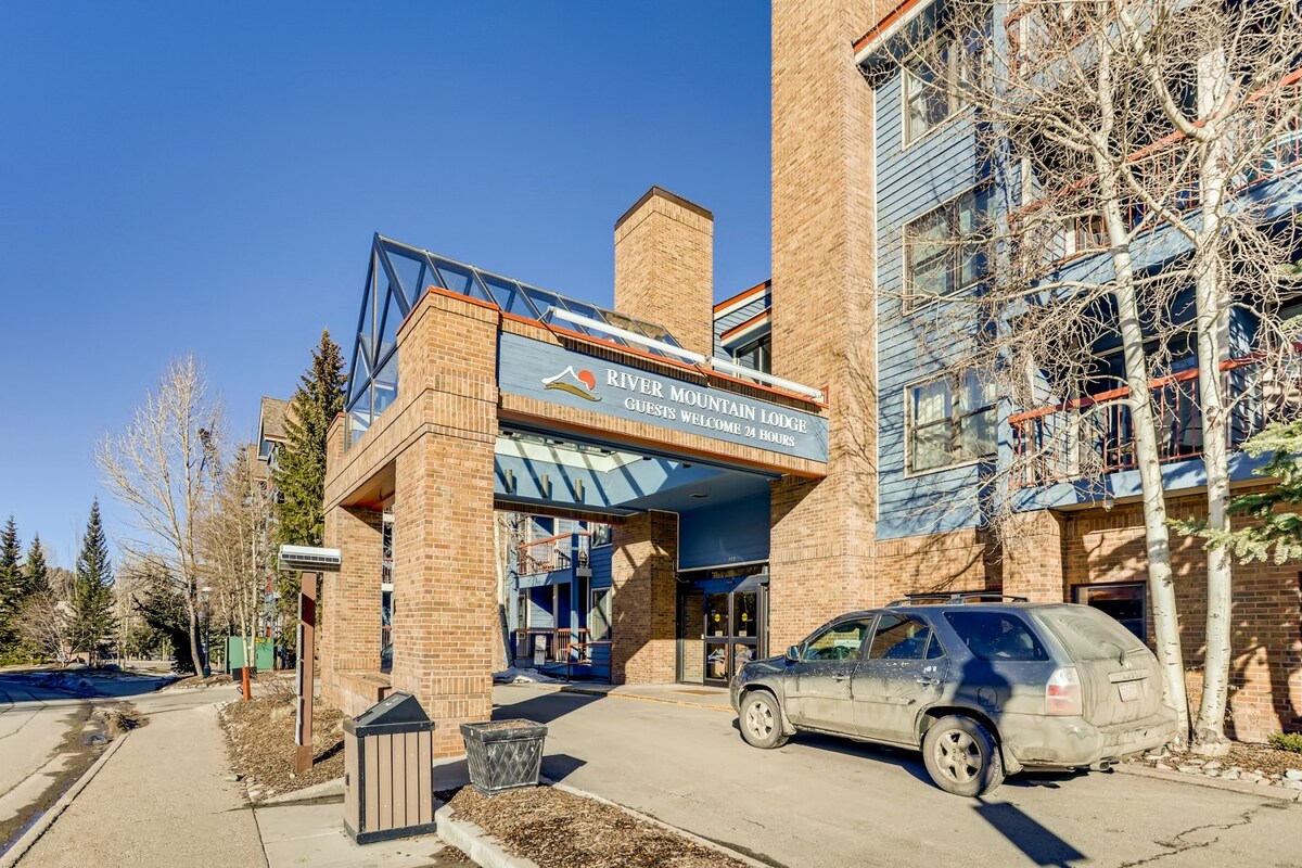 BEST LOCATION in Breck! Ski in/walk out, newly remodeled hotel-room type condo in the River Mountain Lodge has an excellent location in the middle of town, short walk to hiking & biking trails! Over 100, restaurants, bars & shops in Breckenridge, within walking distance! 4 hot tubs, heated pool, fitness center & sauna/steam room. The condo has 2 queen beds, limited kitchenette and a small desk. One (1) on-site parking spot.