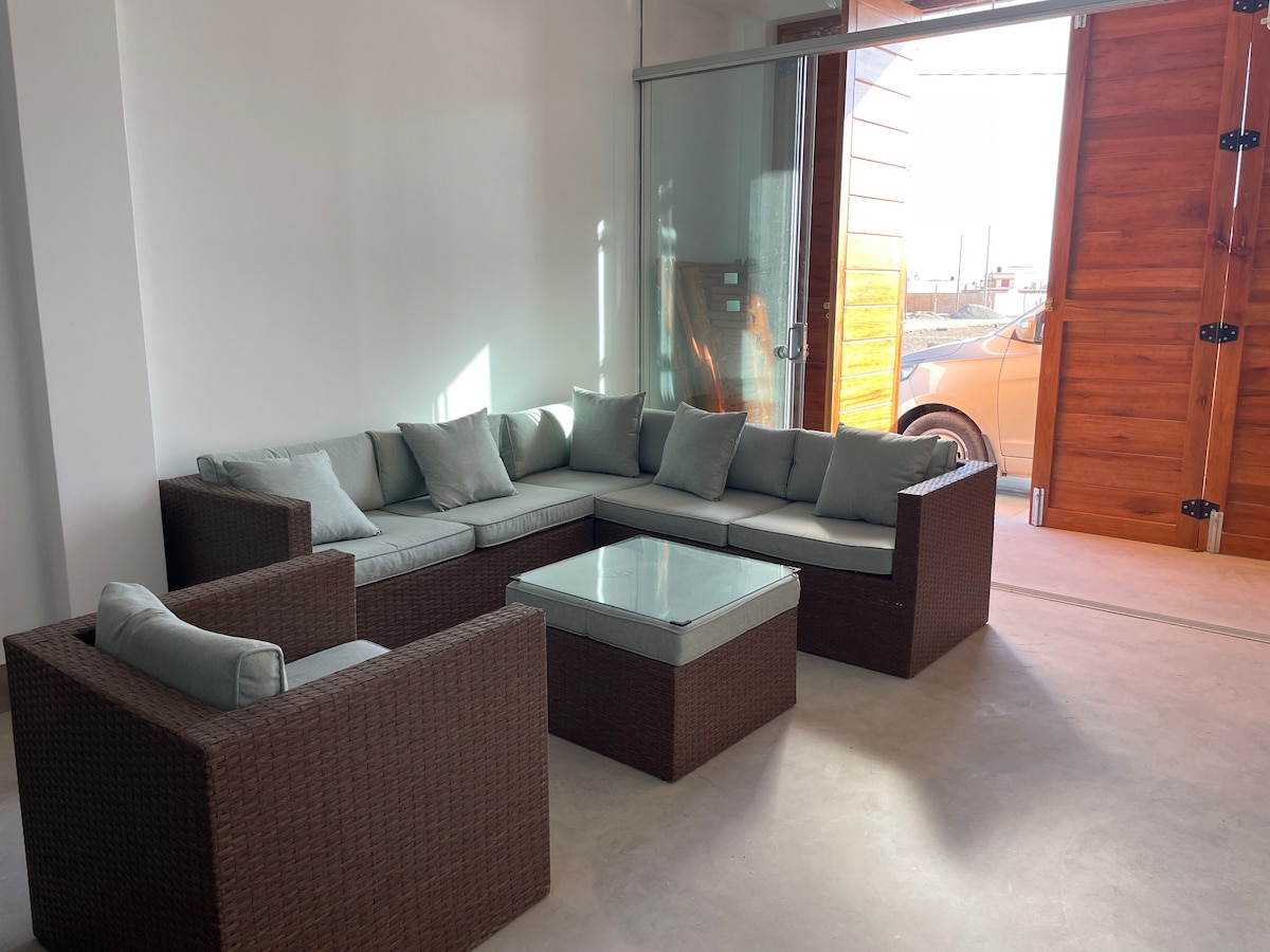 ESCAPATE DE LA CIUDAD – czeka na Ciebie magiczne miejsce. Dom z wysokiej półki o doskonałym wykończeniu, 30 minut od miasta Tacna, Condominio Quinta Palmeras, wspaniały basen, boisko do siatkówki plażowej i piłki nożnej, klub, kilka metrów od morza, STREFA GRILLA, TARAS. Spędź niezapomniane chwile z rodziną lub przyjaciółmi, ciesząc się słońcem przez cały rok. Zapewniamy wszelkie wygody na Twój pobyt. Dom dla maksymalnie 12 osób, aneks kuchenny, otwarta jadalnia i quadrimoto na przejażdżki po plaży.