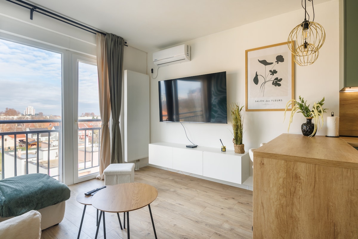 Witamy w Oasis, 4-gwiazdkowym, jasnym i przytulnym apartamencie zaprojektowanym z nowoczesnym wystrojem, wygodnymi meblami i oszałamiającym widokiem na miasto. Posiada przestronny salon, w pełni wyposażoną kuchnię oraz stylową łazienkę z prysznicem i pralką. Bezpłatne szybkie Wi-Fi, klimatyzacja i telewizor Smart TV zapewniają komfort. Centralnie położone, kluczowe atrakcje, takie jak katedra w Osijeku (1,5 km), plac Ante Starčević (1,3 km) i twierdza Tvrđa (2,5 km) itp. Idealne miejsce na niezapomniany pobyt!