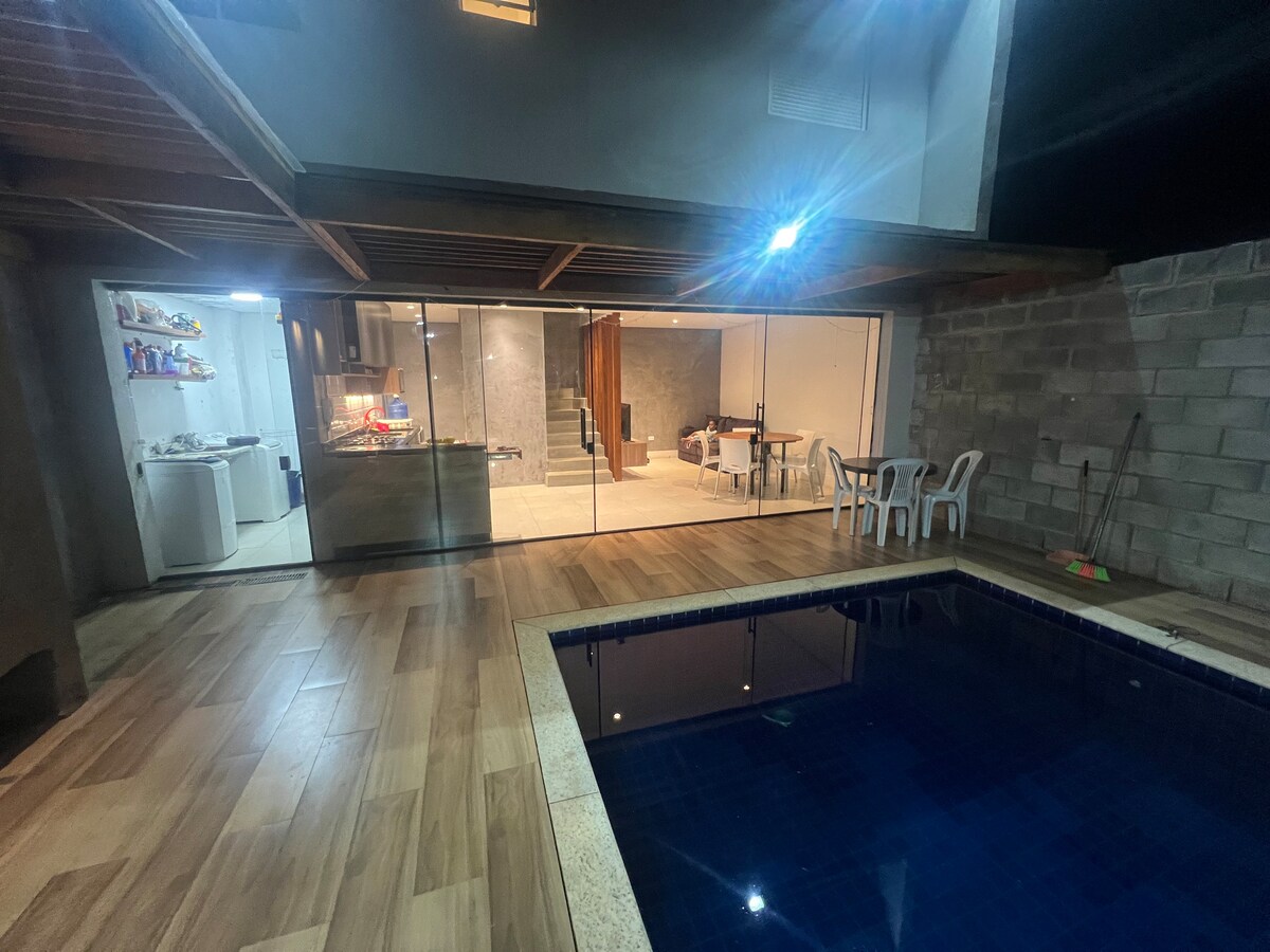 Nieruchomość zajmuje 5000 m², z basenem w pobliżu miejsca do grillowania, boiskiem sportowym i kompletnym pokojem gier (bilard, piłkarzyki, tenis stołowy, gry wideo i stół do kart). Oferuje Wi-Fi z internetem światłowodowym 600 Mb/s, telewizję satelitarną, jednopiętrowy układ, płaski teren, plac zabaw dla dzieci i wiele wspólnych przestrzeni, zarówno wewnątrz, jak i na zewnątrz! Położony zaledwie godzinę od São Paulo! Dom znajduje się zaledwie 10 minut jazdy od centrum miasta oraz centrum skoków spadochronowych i balonowych.