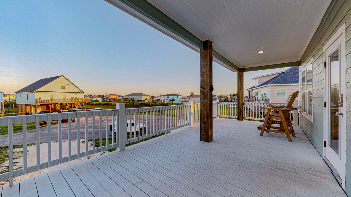 Lazy Gator is a beachfront 3BR/2BA retreat in Gilchrist! Sleeps 10 with 2 king beds & custom bunk room . Enjoy ocean views, outdoor shower , Smart TVs , gourmet kitchen , games , Wi-Fi & pet-friendly vibes. Just steps to the sand & minutes to Crystal Beach + Galveston Ferry . Perfect for families & groups — book your beach escape today!