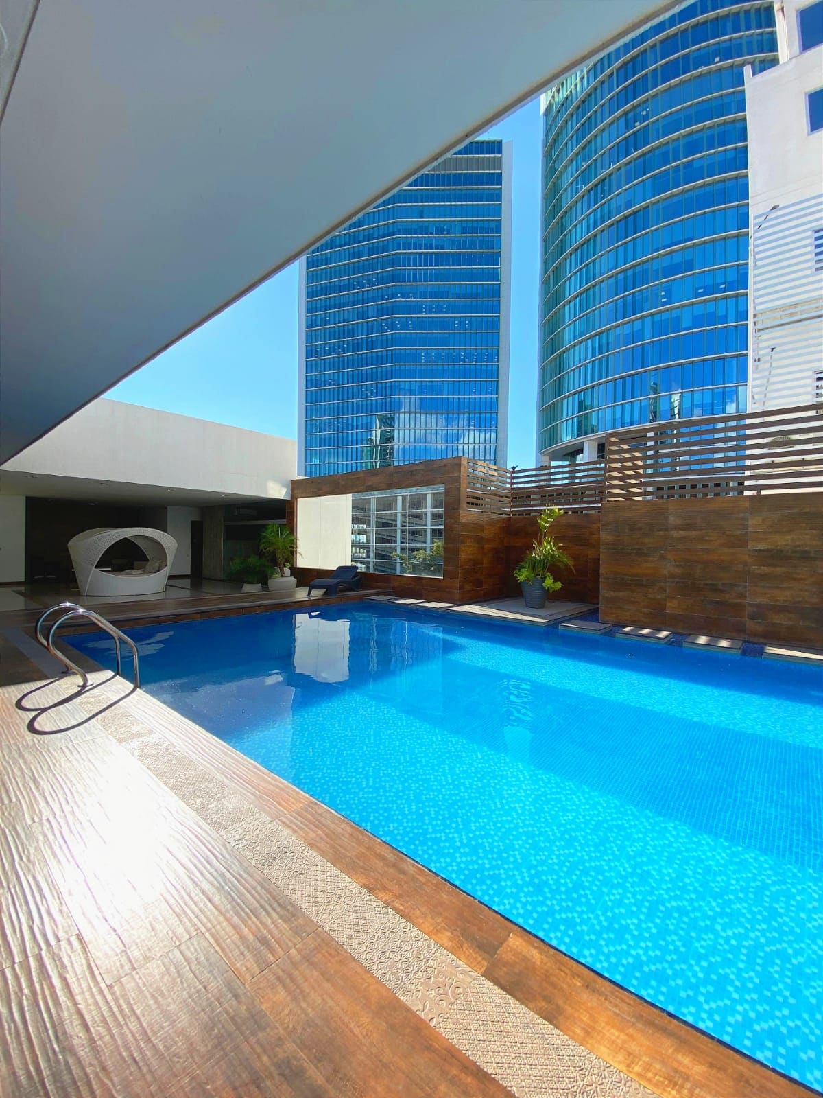 **Q-R-BO** se tiene problemas para hacer pagos escrive me . Disfrutarás de una estancia encantadora y placentera en un apartamento cinco estrellas de 3 dormitorios 4 camas (Inflable) Ubicado en el centro de Santa Cruz, este lujoso, espacioso y encantador apartamento ofrece una hermosa vista panorámica. con piscina cubierta climatizada y otra fría. pedimos identificación para seguridad del condominio hay personal de seguridad ring door bell at front door security cameras on the exterior building