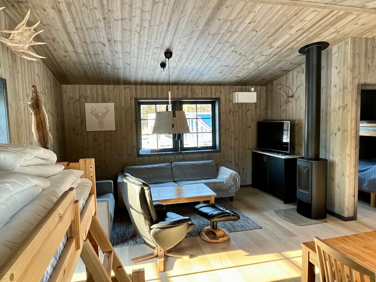 Cozy cottage of 65 m2 right by the lake, first line with stunning water views. Surrounded by peaceful forest, perfect for nature lovers seeking quiet and relaxation. Enjoy morning coffee or sunset wine on your own jetty. Ideal getaway for couples or small families. Breathe fresh air, hear the birds, and unwind completely. A hidden gem by the water! Nicely decorated for Christmas with a cosy fire-place inside and outdoor fire baskets. 30 min to Bollebacken, ski- resort.