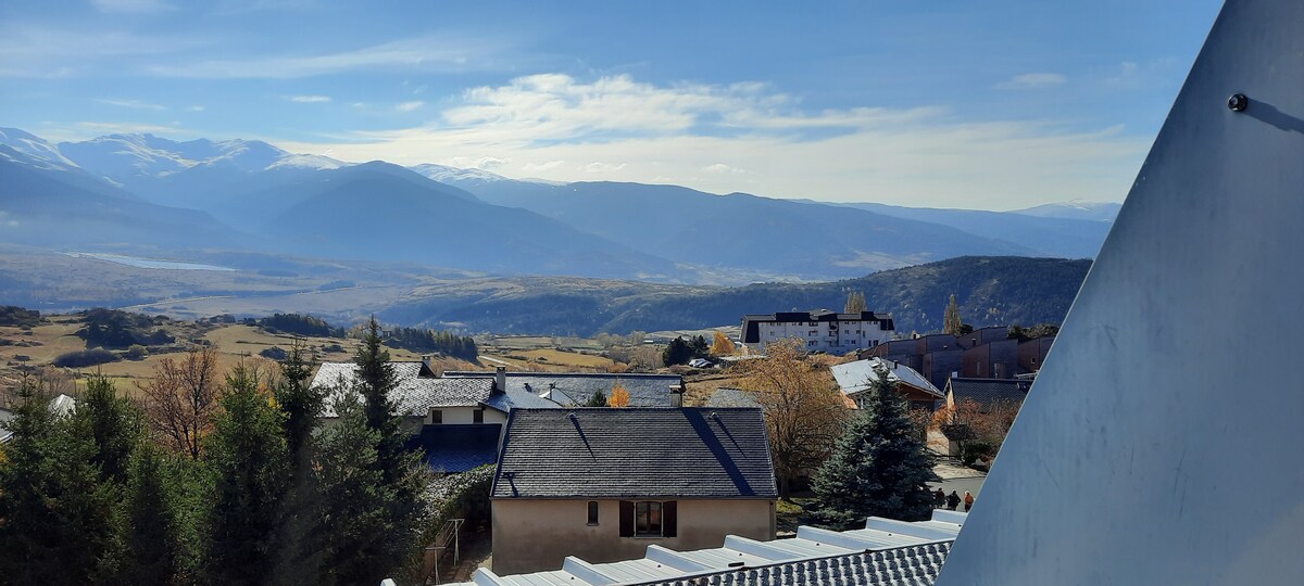 Urokliwe bliźniaki, 5 minut drogi od wyciągów narciarskich, z niesamowitymi widokami na Cerdagne. Nasz apartament, umiejscowiony w niewielkiej, spokojnej rezydencji, jest przeznaczony dla 4 osób. Duża sypialnia ze 140 łóżkiem + duża szafa, przestronna łazienka z wanną, kuchnia w pełni wyposażona w zmywarkę, pralkę, dużą lodówkę, piekarnik, kuchenkę mikrofalową, płytę indukcyjną, żelazko, naczynia, sofę., TV, WiFi, piwnica, garaż . Sprzątanie kosztem lokatorów.