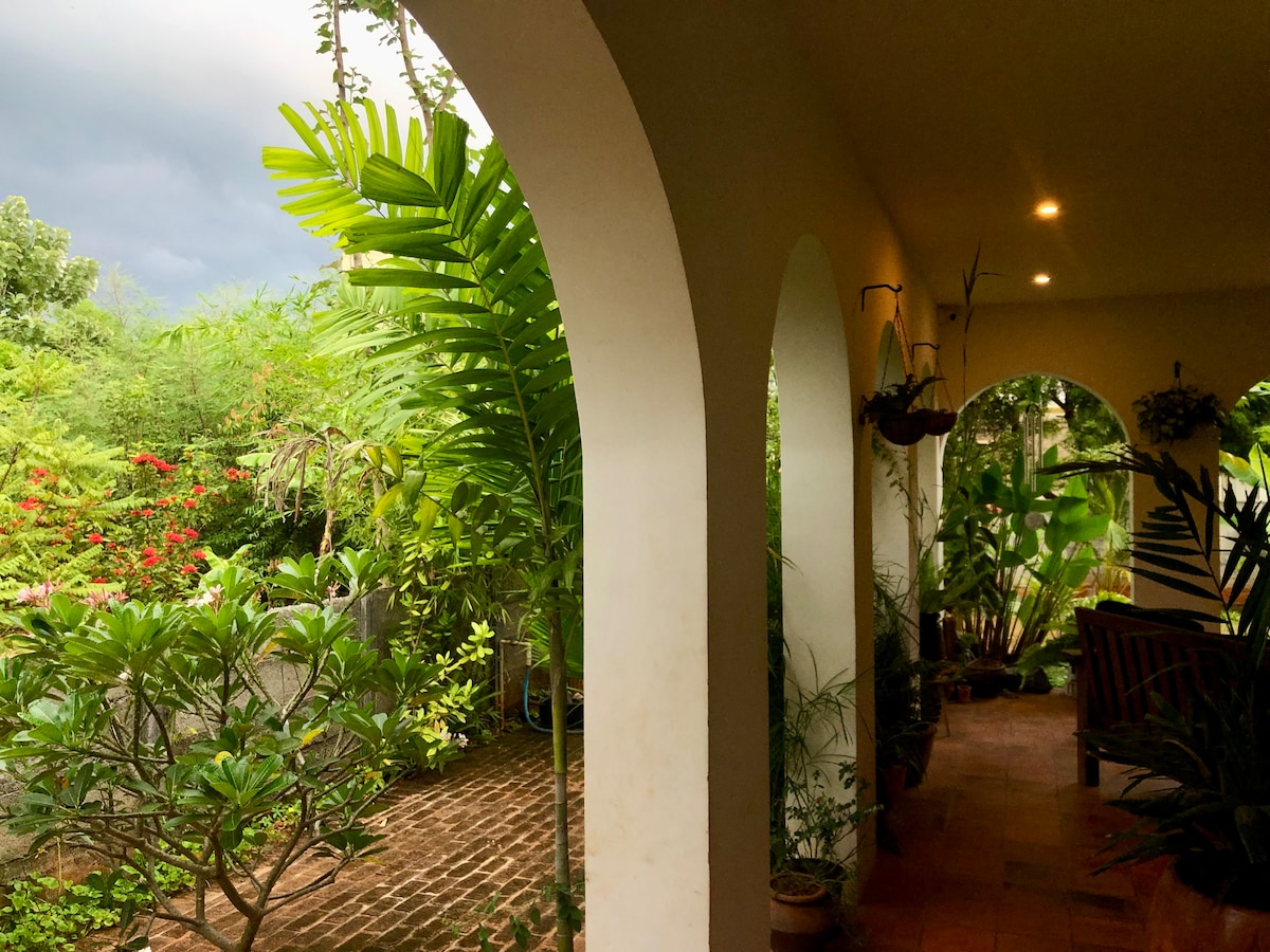 To spokojne miejsce na relaks dla całej rodziny i poczucie dobrego samopoczucia, które wynika z połączenia się z bujnym ogrodem, który jest wyjątkową scenerią tego domu. Znajduje się w odległości 15 minut jazdy od Matri Mandir w Auroville, a także od Sri Aurobindo Ashram, Pondicherry, co czyni go idealnym wyborem dla duchowego podróżnika. Podczas gdy sam dom ma intymny klimat, bujny ogród rozciąga się na trzech akrach, ozdobiony świątyniami, stawami i ścieżkami.