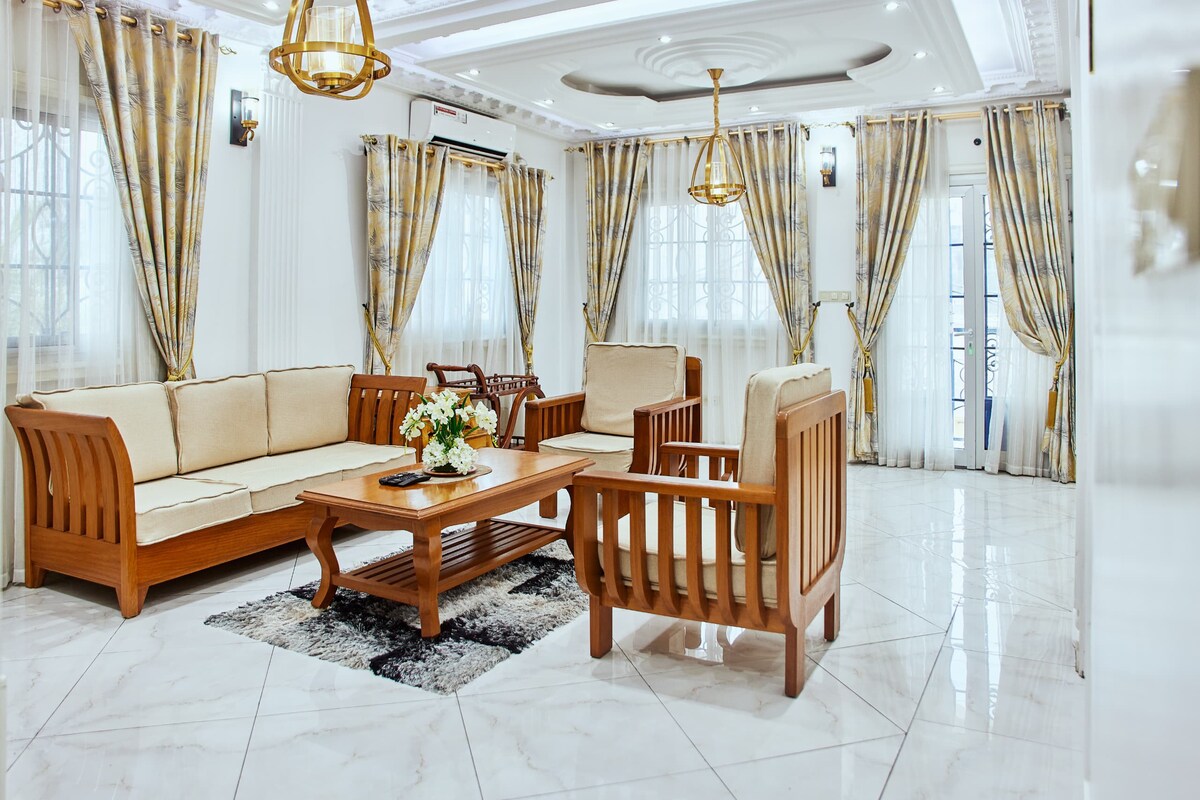 Całkowicie odnowione, nasze jasne mieszkanie łączy afrykańską i zachodnią elegancję. Położony w samym sercu Akwy, oferuje szybki dostęp do najlepszych miejsc w mieście. Ciesz się nowoczesną amerykańską kuchnią, Wi-Fi Starlink (120 Mb/s), dedykowanym biurem, unikalną izolacją akustyczną ze zintegrowanymi przegrodami, IPTV, klimatyzacją i generatorem. Całodobowa ochrona z kamerami i sejfem,★ gwarantowana 5-gwiazdkowa czystość.