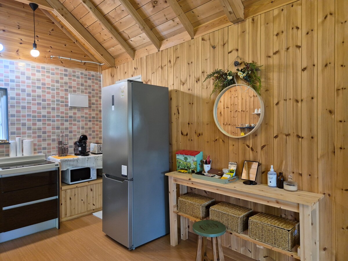 Nasz dom znajduje się w pobliżu Taewasang, Yeongwol, prowincja Gangwon, 15 minut jazdy samochodem od Cheongryongpo, Jangneung, jaskini Gosi, ogrodu Dongseo Yeondangwon, Muzeum Gwiazd Radiowych, Muzeum Fotografii i Obserwatorium Bieulmaro (gdzie można dojechać autobusem). Znajduje się 25 minut od Półwyspu Koreańskiego i 35 minut od Youth Moon Y Park. Rodziny z dziećmi mogą pomieścić do 4 osób i do 3 osób dorosłych. To willa w stylu loftowym, a od jesieni do wiosny możesz cieszyć się kominkiem, a także usiąść w ogrodzie przed kwaterą i grillować w relaksującej atmosferze. Prowadzimy dwie niezależne przestrzenie. Zapraszamy wszystkich, którzy chcą się zrelaksować. * Bezpłatna usługa odbioru * Bezpłatny grill * Dostępne drewno na opał * Kominek jest obsługiwany od października do marca * Dostępne ładowanie pojazdów elektrycznych