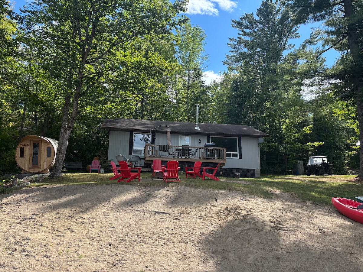 Ciekawy i przytulny domek z 1 sypialnią schowany wzdłuż południowo-wschodniego brzegu małego, cichego jeziora. Niedawno odnowiony domek jest idealnym romantycznym miejscem na wypoczynek. Znajduje się 1 km od tras skuterów śnieżnych/ATV, 15 minut od Bancroft i 45 minut od Algonquin Park. W domku znajduje się pływający dok z drabinką do pływania, grill, palenisko na świeżym powietrzu, kajak, kajaki, kominek na drewno, telewizor Smart TV z anteną satelitarną Starlink.