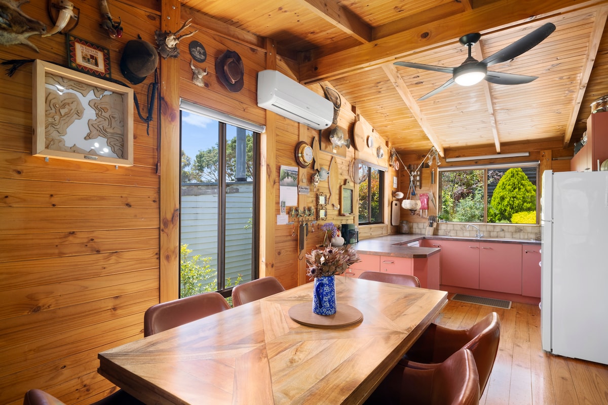 Ta oryginalna chata bez dostępu do sieci energetycznej, położona wysoko nad jeziorem Eildon z zapierającymi dech w piersiach widokami aż po Mount Buller, to idealne zimowe miejsce na wypoczynek dla osób pragnących prywatności, wyjątkowej atmosfery i prawdziwej więzi z naturą. Otoczone dziką przyrodą miejsce łączy rustykalny urok z przemyślanymi udogodnieniami, które pozwalają cieszyć się spokojnymi porankami, wieczorami w jacuzzi i niezapomnianymi nocami pod gwiazdami. Miejsce, w którym można odetchnąć, rozgrzać się i podziwiać jeden z najbardziej niezwykłych widoków w regionie.