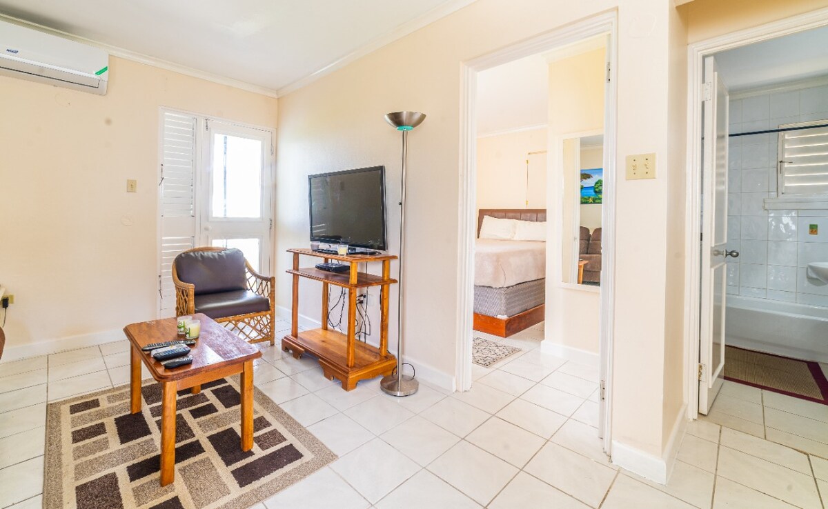 Piękne studio balkonowe na świeżym powietrzu, pozwalające na przepływ morskiej bryzy. Sufit z drewna karaibskiego, odnowiona kuchnia z pełnowymiarową kuchenką, duża lodówka, kuchenka mikrofalowa, toster, blender, ekspres do kawy, naczynia, żelazko, wygodne łóżko typu queen, pralka, wentylatory sufitowe/podłogowe, klimatyzacja, Wi-Fi, telewizor Smart TV, mała elegancka łazienka. The Point to prywatna społeczność z całodobową ochroną, ścieżką nadmorską, dwiema plażami, basenami skalnymi, basenem, kortem tenisowym, miejscami na piknik i możliwością nurkowania tuż za progiem.
