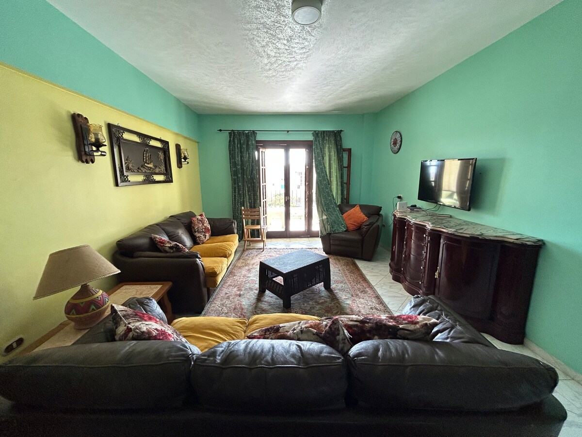 The whole group will be comfortable in this spacious and unique space. Holding enough room for families, two TV’s, and full day Beach Access day and night, no prohibition of accessing beach at night to hear the sound of the waves with some peaceful music. The place is next to Many well Known restaurants offering both salty and desserts.