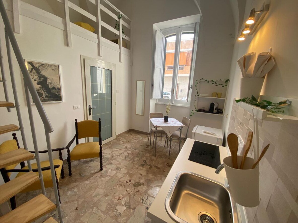 Duży apartament z dziedzińcem i solarium położony w niedawno odnowionym XVI-wiecznym włoskim palazzo. W apartamencie znajdują się 2 sypialnie, kuchnia, łazienka i duży taras zewnętrzny (współdzielony z innym apartamentem). Nasza rezydencja znajduje się w starym mieście Carpignano Salentino, 10 km od Otranto, kilka kilometrów od najlepszych plaż w Salento w Apulii. Zapewniamy składniki na śniadanie do samoobsługi. Bezpieczny, publiczny parking znajduje się w odległości kilku metrów od domu.