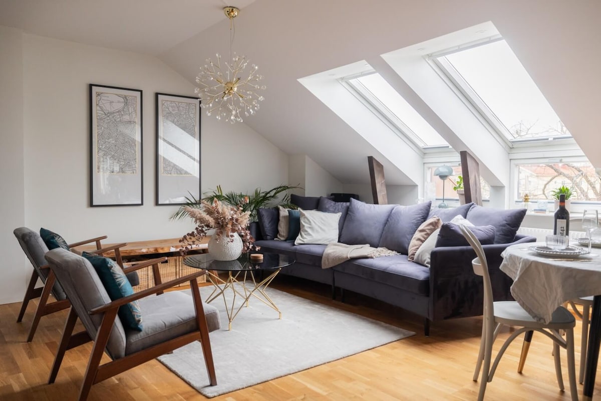 Witamy w tym uroczym apartamencie na poddaszu w sercu Kalmar, położonym na skrzyżowaniu Kaggensgatan/Södra långgatan. Zamieszkaj w historycznej perle – pięknym domu z XVII wieku, w którym możesz cieszyć się eleganckimi przestrzeniami o powierzchni 100 m². Apartament składa się z trzech pokoi i kuchni, idealnych dla maksymalnie sześciu osób. Zrelaksuj się w prywatnej saunie po dniu pełnym wrażeń. Poznaj Kalmar w stylu i komforcie! Dworzec kolejowy znajduje się w odległości 150 metrów, a plaża Kattrumpan w odległości 450 metrów – zarezerwuj swój pobyt już teraz!