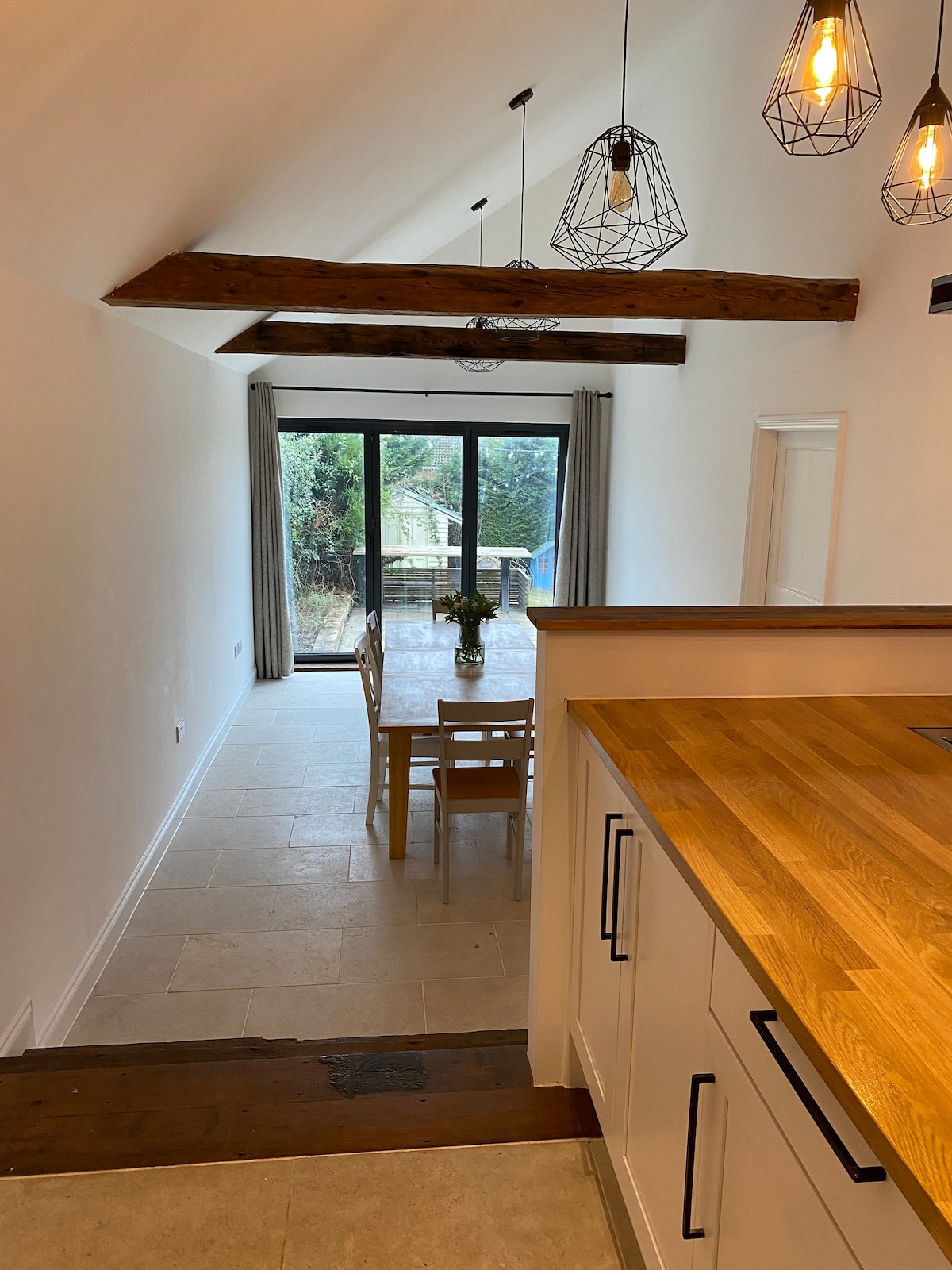 Nasza chatka oferuje przytulny, niezależny pobyt z w pełni wyposażoną kuchnią, salonem, sypialnią z łóżkiem typu super-king, luksusowym prysznicem w pokoju i dodatkową toaletą. Ten ekologiczny dom ma ogrzewanie podłogowe zasilane powietrzem i zawiera wiele przedmiotów pochodzących z recyklingu, od zewnętrznych desek rusztowań po wiele przeznaczonych do ponownego użytku klejnotów, które można znaleźć w środku. Na zewnątrz znajduje się prywatne patio i ogród z widokiem na południe z własnym miejscem parkingowym, a wszystko to w odległości spaceru od miasta.
