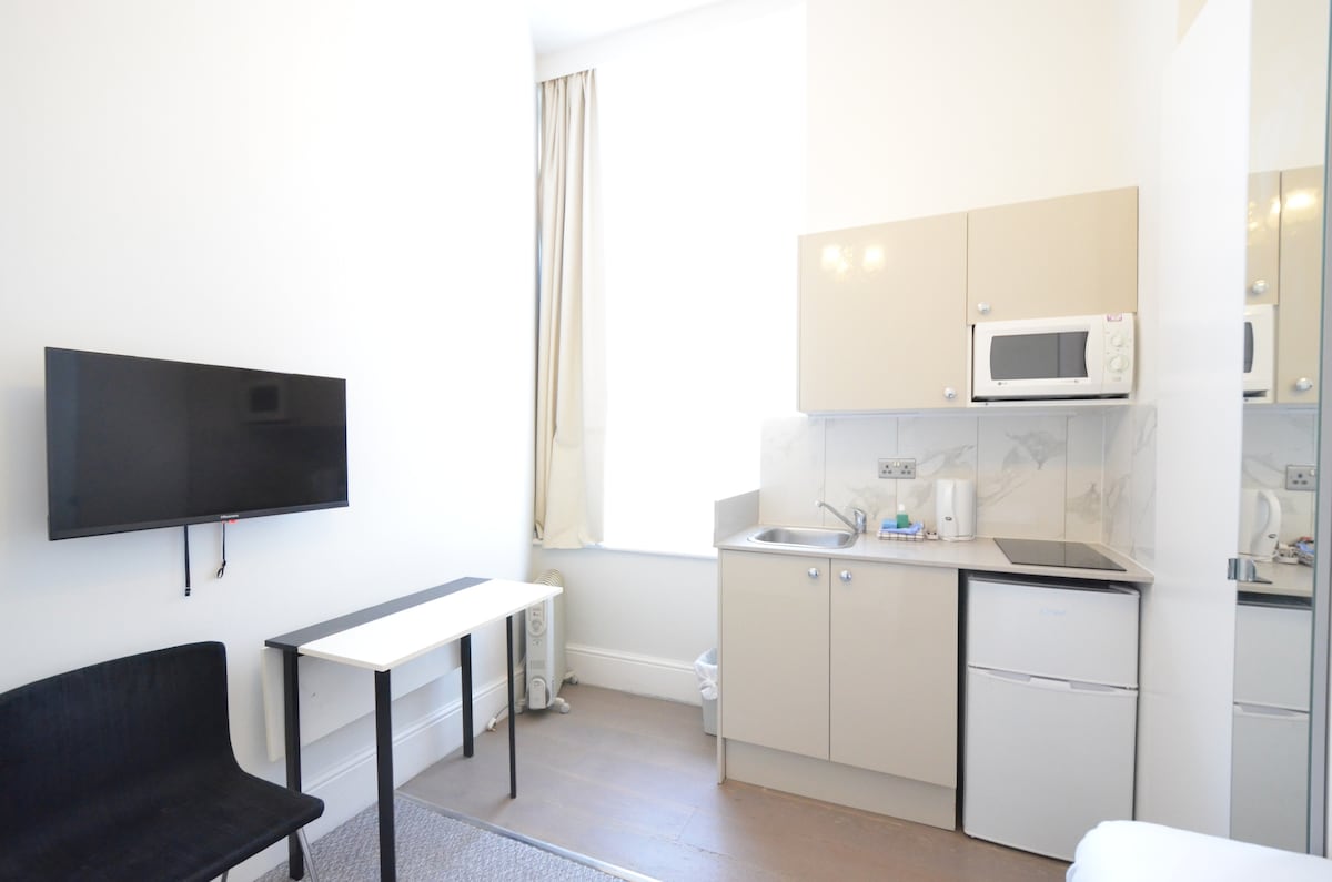 Zupełnie nowy i przestronny Garden Hotel Room na parterze w samym sercu Golders Green w Londynie. Blisko wszystkich głównych połączeń komunikacyjnych do centrum Londynu, a także udogodnień, w tym znakomitych restauracji, barów, kawiarni i sklepów. Pokój 3-osobowy (łóżko typu King + łóżko pojedyncze) z wysokimi sufitami, nowoczesną podłogą, nowoczesną łazienką, wtyczkami USB (c), telewizorem i lodówką. To idealny pokój hotelowy dla grup podróżujących służbowo lub rekreacyjnie. Darmowy parking (wymagane rezerwacje). Smart TV, bezpłatne szybkie Wi-Fi i cicha lokalizacja