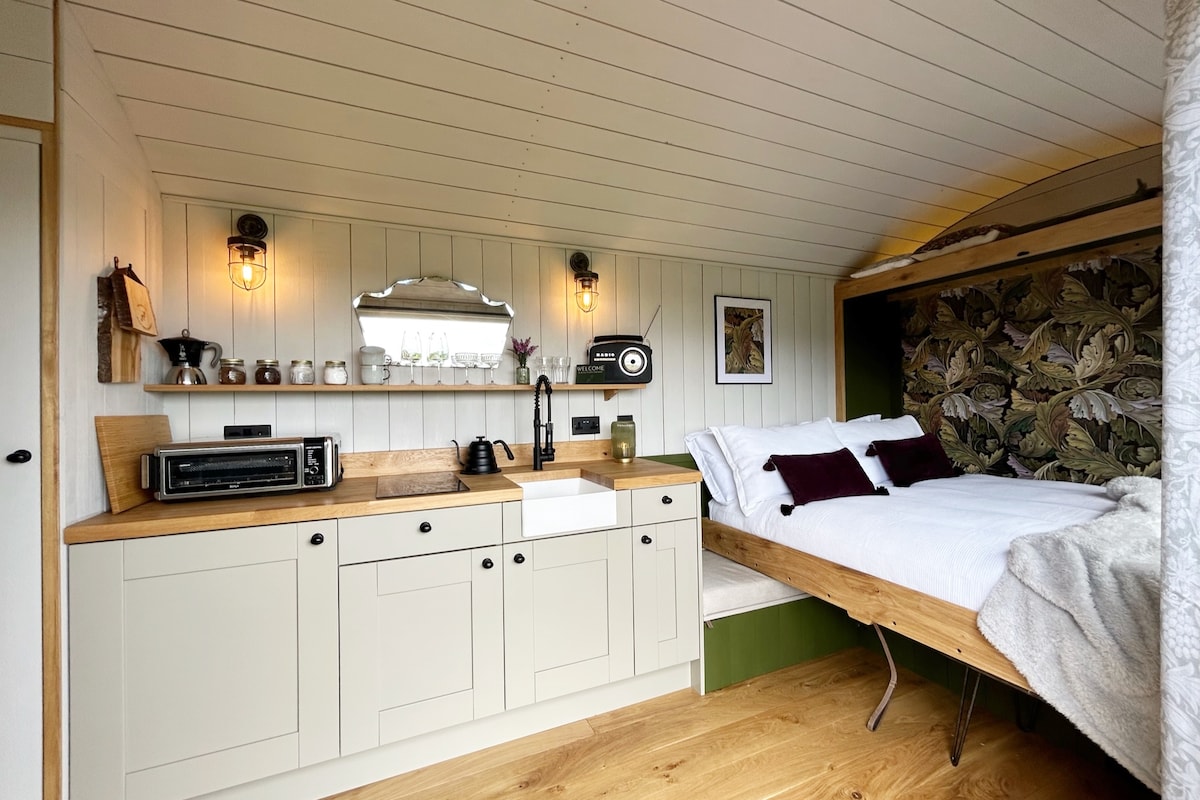 Blackthorn Hideaway to nasza luksusowa, szyta na miarę chata pasterska. Ma widok na otwarte pole i jest otoczony pięknymi spacerami po okolicy, pubami, restauracjami, słynnymi atrakcjami, a także znajduje się zaledwie 20 minut od Parku Narodowego Peak District. Hideaway to idealne miejsce na romantyczny wypoczynek z małym psem (dodatkowa opłata). Na zewnątrz znajduje się prywatny, taras z krzesłami, stołem, luksusową wanną zewnętrzną i paleniskiem – idealne miejsce na relaks, odpoczynek i przytulne spędzanie czasu pod gwiazdami.