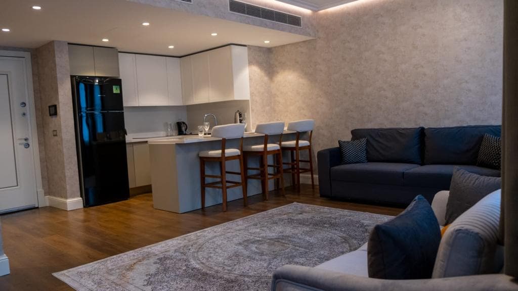 Enjoy a comfortable stay in our modern 65 m² residence within walking distance of Taksim Square. Cozy bedroom with balcony, bright living room, and fully equipped kitchen. Experience the comfort of a home with hotel-quality convenience and cleanliness. Located in a secure building with 24/7 security and elevator access, ideal for families, couples, and business travelers. Transport, restaurants, and shops are nearby, yet the area is peaceful and safe.