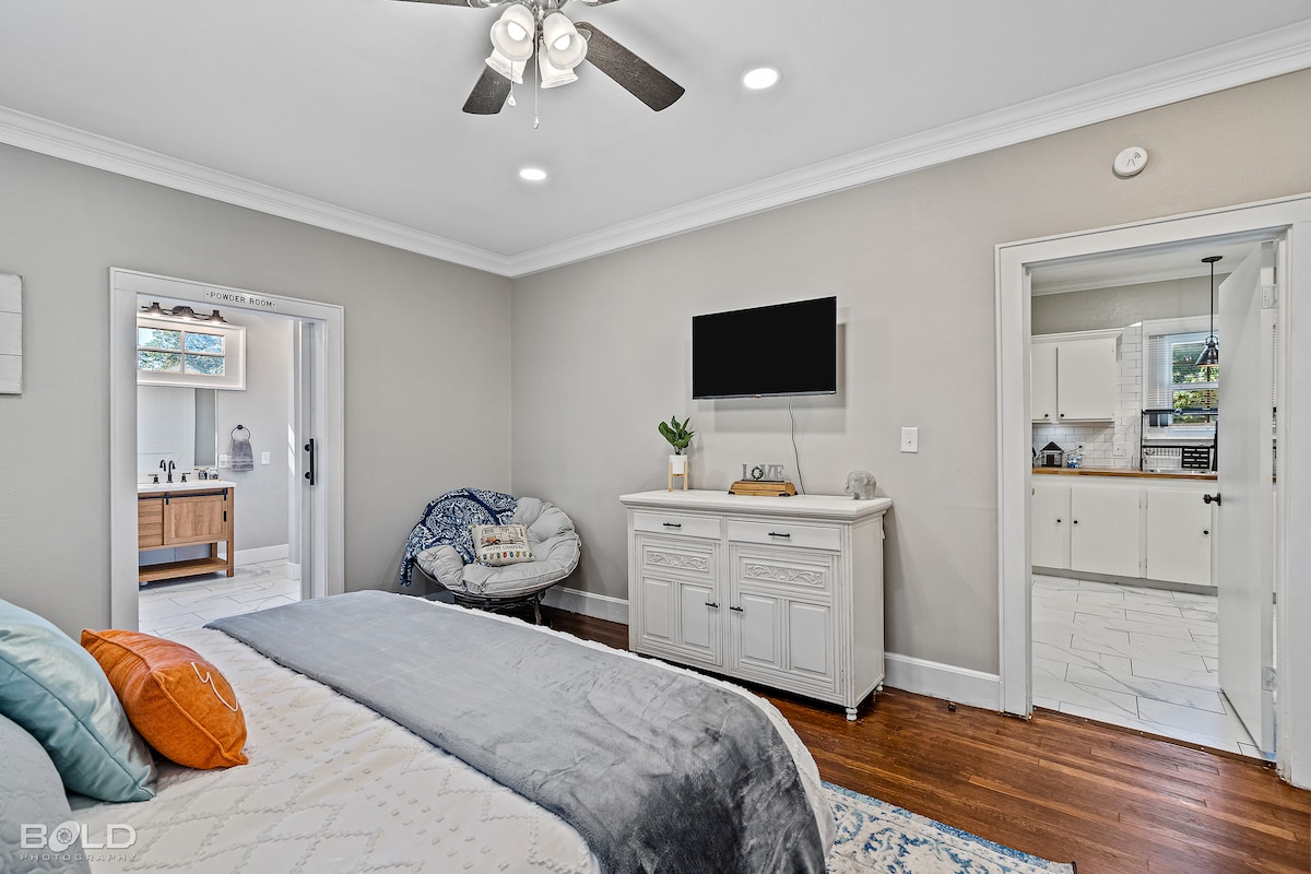 Ciesz się stylowym pobytem w tym centralnie położonym domu. Przytulny dom z 3 sypialniami w pobliżu bazy lotniczej Barksdale i supermarketu Brookshire Grocery Arena, idealny dla rodzin, wojskowych lub na pobyt średnioterminowy. 2 łóżka typu King z pianką z pamięcią kształtu, pełnowymiarowa sofa rozkładana, 2 biurka do pracy zdalnej i otwarta przestrzeń mieszkalna/kuchnia. Ciesz się osłoniętym przedsionkiem Catio, zadaszonym tarasem z paleniskiem, dużym prywatnym ogrodzonym podwórkiem narożnym, telewizorami Smart TV i parkingiem przy ulicy – przytulnym, pełnym sztuki miejscem wypoczynku w pobliżu sklepów, restauracji i parków.