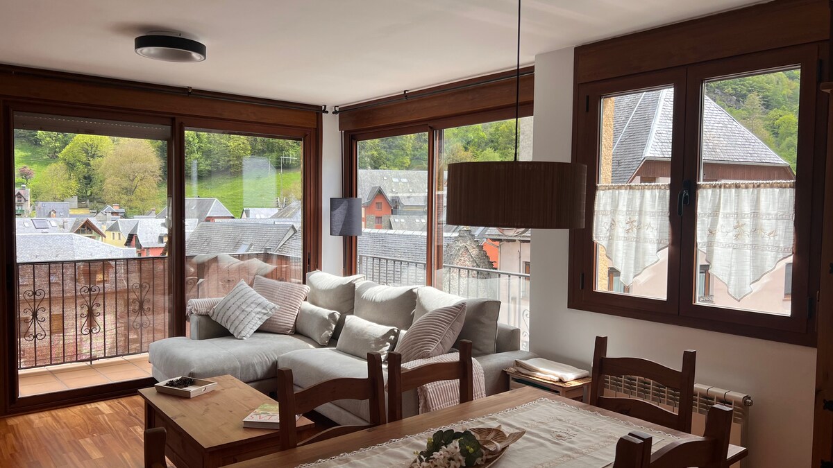 Jasny poddasz w apartamencie dwupoziomowym w centrum Vielha. Z MIEJSCEM PARKINGOWYM i BASENEM w lipcu i sierpniu. Nieograniczone widoki na południe. Ciepłe wykończenia drewniane. Przestrzeń przygotowana dla maksymalnie 4 osób (podwójne łóżko + podwójna sofa z funkcją spania) idealna dla par, rodzin lub małych grup, które chcą cieszyć się górami, wędrówkami, stokami narciarskimi lub gastronomią Doliny. Nie zapominaj, że Twój zwierzak jest mile widziany jako członek rodziny.