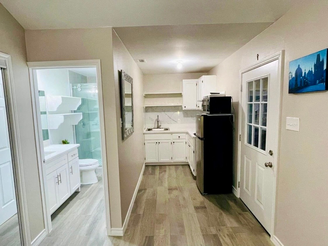 Udało Ci się znaleźć swój dom z dala od domu! Nasz centralnie położony, zamykany, luksusowy apartament może pochwalić się przestronnym głównym apartamentem z łóżkiem typu king-size, garderobą i łazienką w apartamencie. Drugi apartament jest wyposażony w pluszowe łóżko typu queen i drugą łazienkę z toaletą po drugiej stronie korytarza. Ten dobrze wyposażony apartament ma udogodnienia, których można oczekiwać od swojego ulubionego hotelu, z kilkoma dodatkowymi udogodnieniami, które sprawią, że poczujesz się jak w domu. Prywatne, ciche i położone w pobliżu restauracji, centrum handlowego, sklepów i HEB!