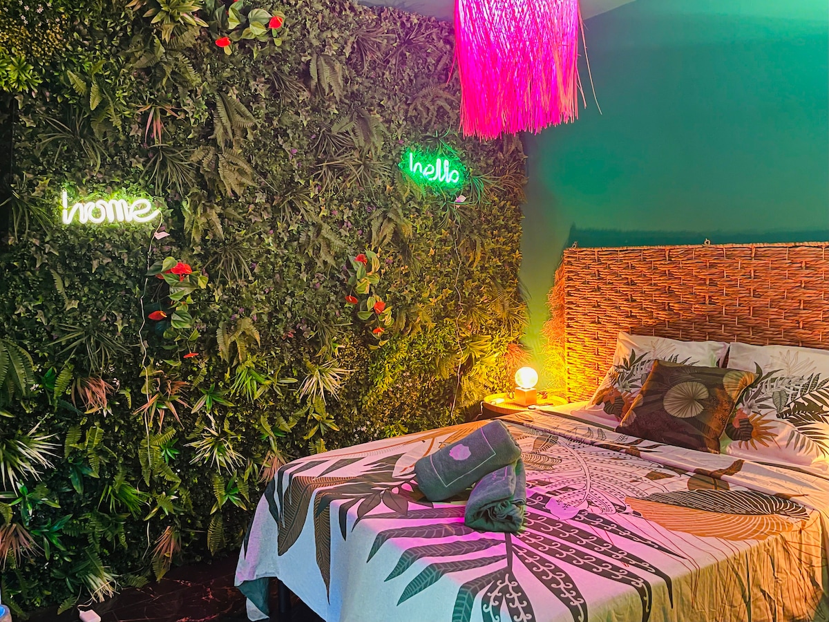 Ce logement unique est proche de tous les sites et commodités, ce qui facilite la planification de votre visite. Ambiance jungle chic garantie ! Suite cosy décorée façon nature, climatisation, cuisine équipée et salle de bain moderne. À l’extérieur : jacuzzi privé + douche tropicale dans un jardin végétalisé. Parfait pour une escapade détente ou romantique.