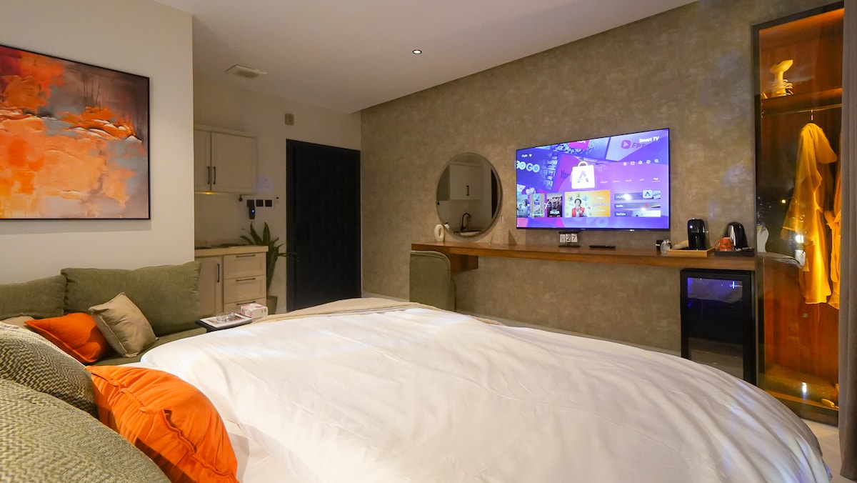 Poczuj sztukę i zatankuj swoją energię w naszym oszałamiającym apartamencie w Hittin w Rijadzie! To profesjonalnie zaprojektowane arcydzieło jest Twoją bramą do niezapomnianego pobytu w mieście. Odpręż się i zrelaksuj w tej luksusowej i kolorowej przestrzeni. Każdy szczegół jest starannie wykonany. Zrelaksuj się i zrelaksuj dzięki wysokiej jakości udogodnieniom, pozostań w kontakcie z internetem 5G i ciesz się pobytem. Lokalizacja: Riyadh Gems at Your Doorstep: Explore iconic landmarks like Boulevard City, Boulevard World, all within a 5-minute walk