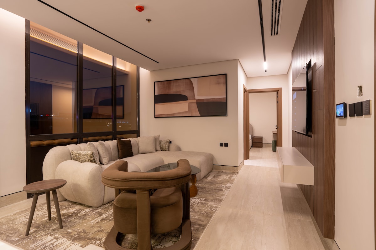 Stylowe nowoczesne mieszkanie w Hittin, na północy Rijadu , z oszałamiającym widokiem na Boulevard City. Jest tak blisko Boulevard City, Kingdom Arena, KAFD, Diriyah, Riyadh Park. W pełni wyposażona kuchnia, telewizor 75”, Wi-Fi 5G, Shahid i OSN+. Cichy, prywatny pobyt z inteligentnym wejściem i bezpłatnym parkingiem.