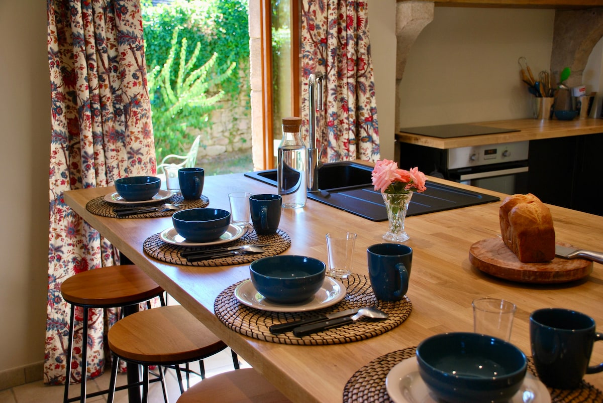 Ancienne maison de pierre du 19e siècle, entièrement rénovée cet hiver, elle allie authenticité et modernité pour vous offrir un séjour unique. La maison est composée de trois chambres chacune équipée de sa propre salle de bain, ainsi qu’un grand séjour et sa cuisine équipée. La maison possède ses propres extérieurs et aussi un accès direct sur le parc du château et sa piscine. Calme et tranquillité vous entourent pour un séjour hors du commun entouré de verdure et d’animaux.