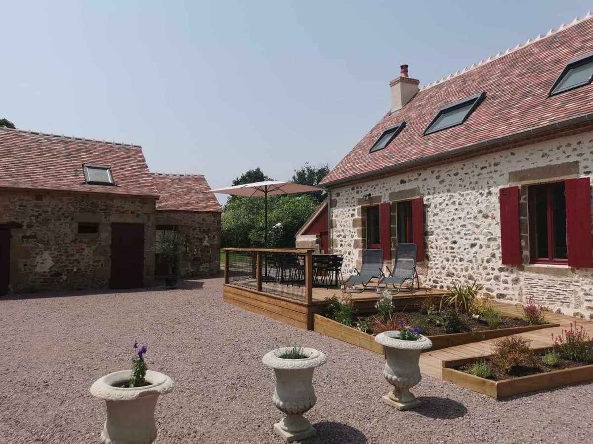 Moje miejsce jest w pobliżu pięknego lasu narodowego, jeziora do łowienia ryb. Przestronny wyremontowany dom rustykalny o powierzchni 180 m2 w lesie Tronçais, spokojny, otoczony przyrodą, 13 km od zjazdu 9 -A71. Dom nadaje się na przyjazny lub rodzinny pobyt, Montluçon 30Km, Moulins 50kmn, Le Pal 1h10. dla 2 par i 5 dzieci, lub 4 pary. Zmywarka, lodówka / zamrażarka, piekarnik, kuchenka mikrofalowa, grill, leżaki i meble ogrodowe, mały garaż. Taras przed domem, 1 zadaszony taras, ogród