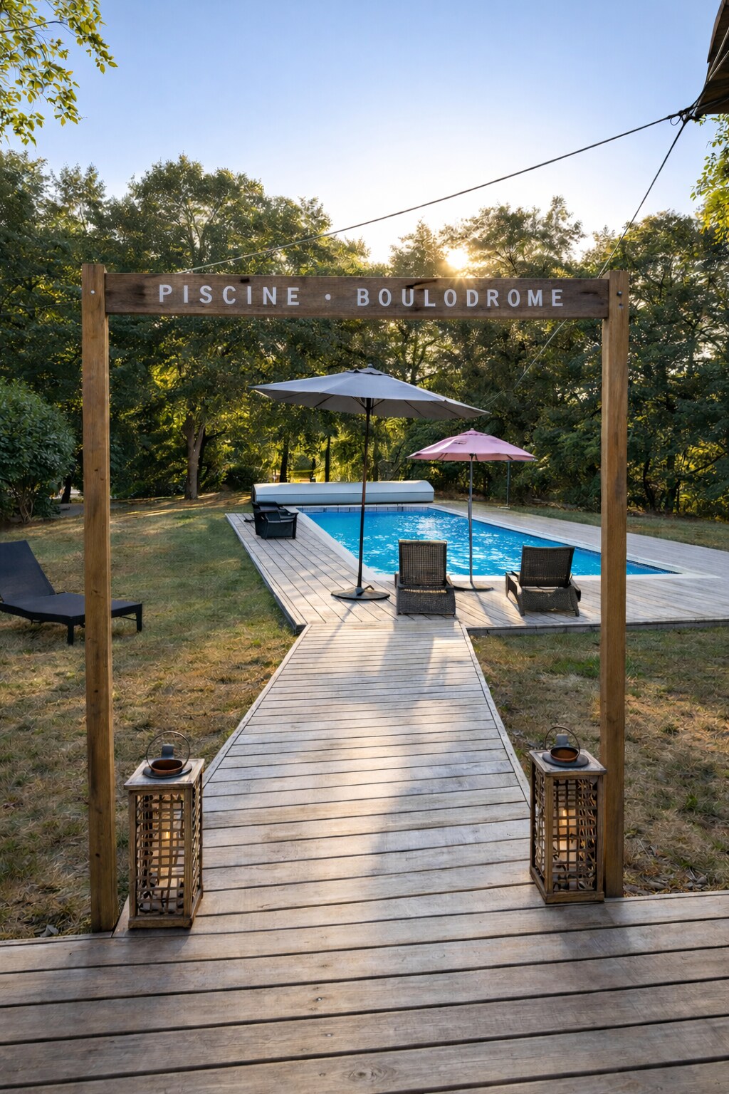 Urocza drewniana chatka zbudowana z tropikalnych i egzotycznych materiałów w samym sercu Andernos-les-Bains, położona w prywatnym ogrodzie o powierzchni 400 m2, ukrytym i otoczonym leśną okolicą. Chatka znajduje się blisko Arcachon Bay (5 min jazdy samochodem), 30 min jazdy od Cap Ferret, 3 min od Bordeaux Mérignac i zaledwie 8 min jazdy rowerem od centrum miasta. Blisko niekończących się tras rowerowych.