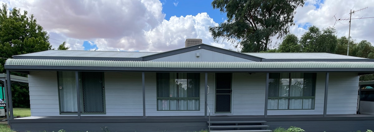 Nowoczesny, komfortowy dom położony w cichym, malowniczym miejscu z widokiem na rzekę Darling w kultowej wiosce turystycznej na pustkowiach, 5 km na północ od Bourke. Zapraszamy do korzystania z naszej hojnej przestrzeni mieszkalnej wewnątrz i na zewnątrz. Często z naszego tylnego tarasu można obserwować wiele gatunków ptaków. Na miejscu znajduje się popularna galeria Back O' Bourke.