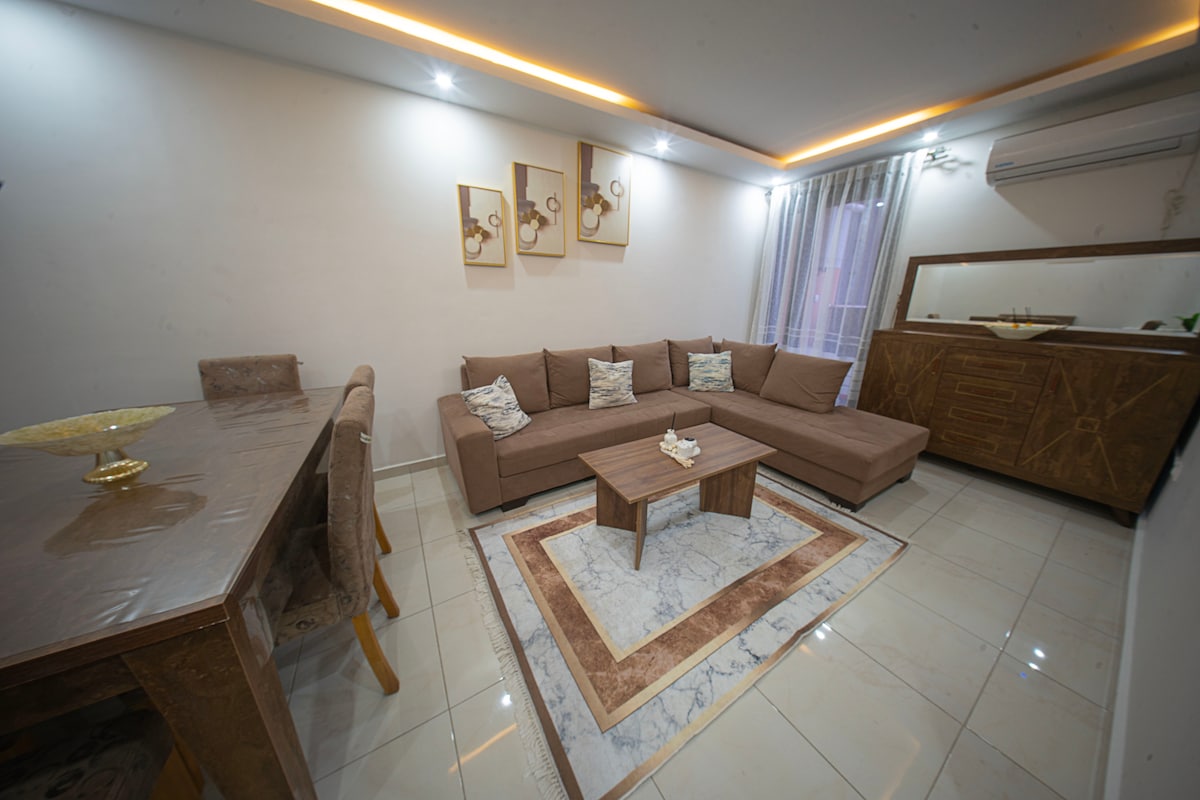 Séjournez à la Frange Maritime, dans un appartement élégant et moderne, idéal pour un couple ou de jeunes mariés. Profitez d’un grand salon décoré avec soin, d’une véranda cosy avec balançoire, et d’une chaise de massage relaxante. Cuisine équipée, Wi-Fi rapide et parking privé. À 10 min d’Akid Lotfi et proche des commerces.
