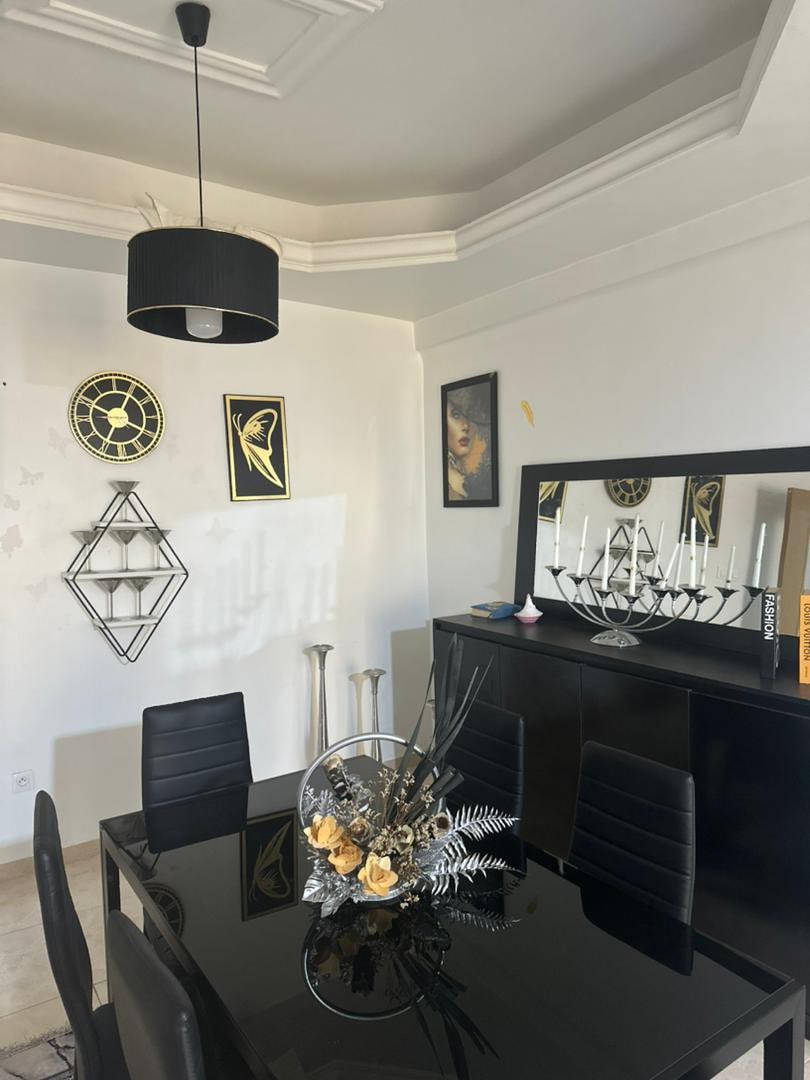 F3 de 66 m2 tout confort, calme et lumineux, entièrement rénové avec parquet bois. Décoration atypique et artisanale. Composé de : • Séjour avec cuisine équipée • Salon (canapé d’angle avec télé) • 2 chambres (lit double et à étages, lit gigogne et lit parapluie) • 2 climatisations • WIFI, eau H24 et linge de maison Dans une résidence moderne «Ryad city III» avec entrée sécurisée (badge, caméra et gardien), 5ème étage avec ascenseur, mosquée au bas de la résidence