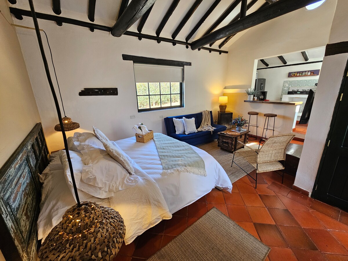 Suite Campestre z niesamowitymi widokami na góry, ciesz się przyrodą, relaksem i komfortem. Niezależny dostęp. Przestrzeń coworkingowa, doskonałe WI-FI. Składa się z 1 przestronnego pokoju, 1 pełnego łóżka i 1 łóżka dwuosobowego. Balkon kryty, prywatna łazienka, telewizor Netflix, Przestrzeń socjalna z jadalnią na zewnątrz. Miejsce na ognisko z grillem. Twój zwierzak jest mile widziany! Półwiejska lokalizacja zaledwie 4 km od Plaza Principal. Duży bezpłatny parking prywatny. Doskonałe światłowodowe Wi-Fi Przestrzeń do pracy