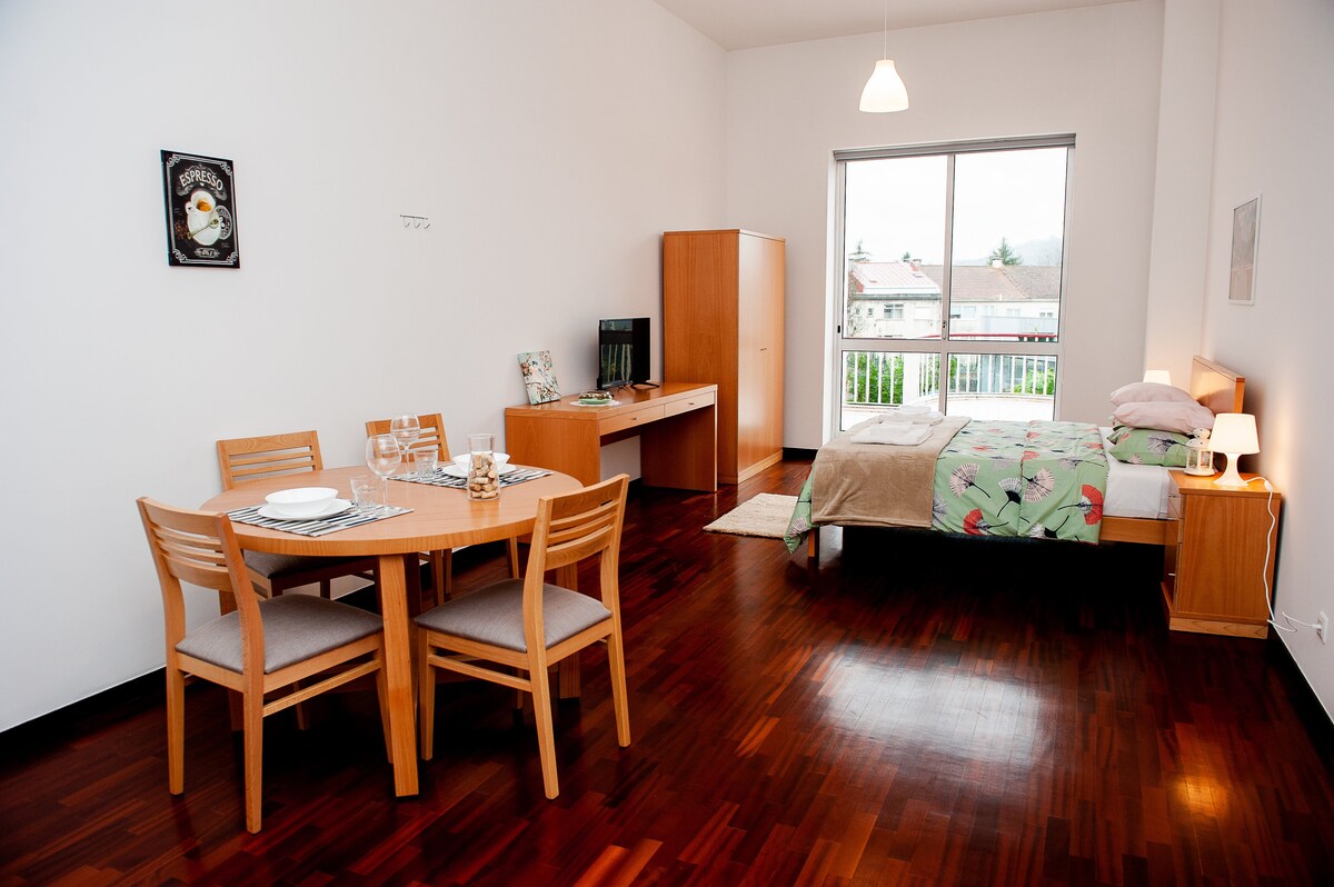 Wygodne i przytulne Studio, zaprojektowane z myślą o przyjemnych pobytach. Przestrzeń odnowiona, przestronna i uprzywilejowana przez obfite naturalne światło. Znajduje się w strefie dla pieszych, w historycznym centrum pięknej Bragi.