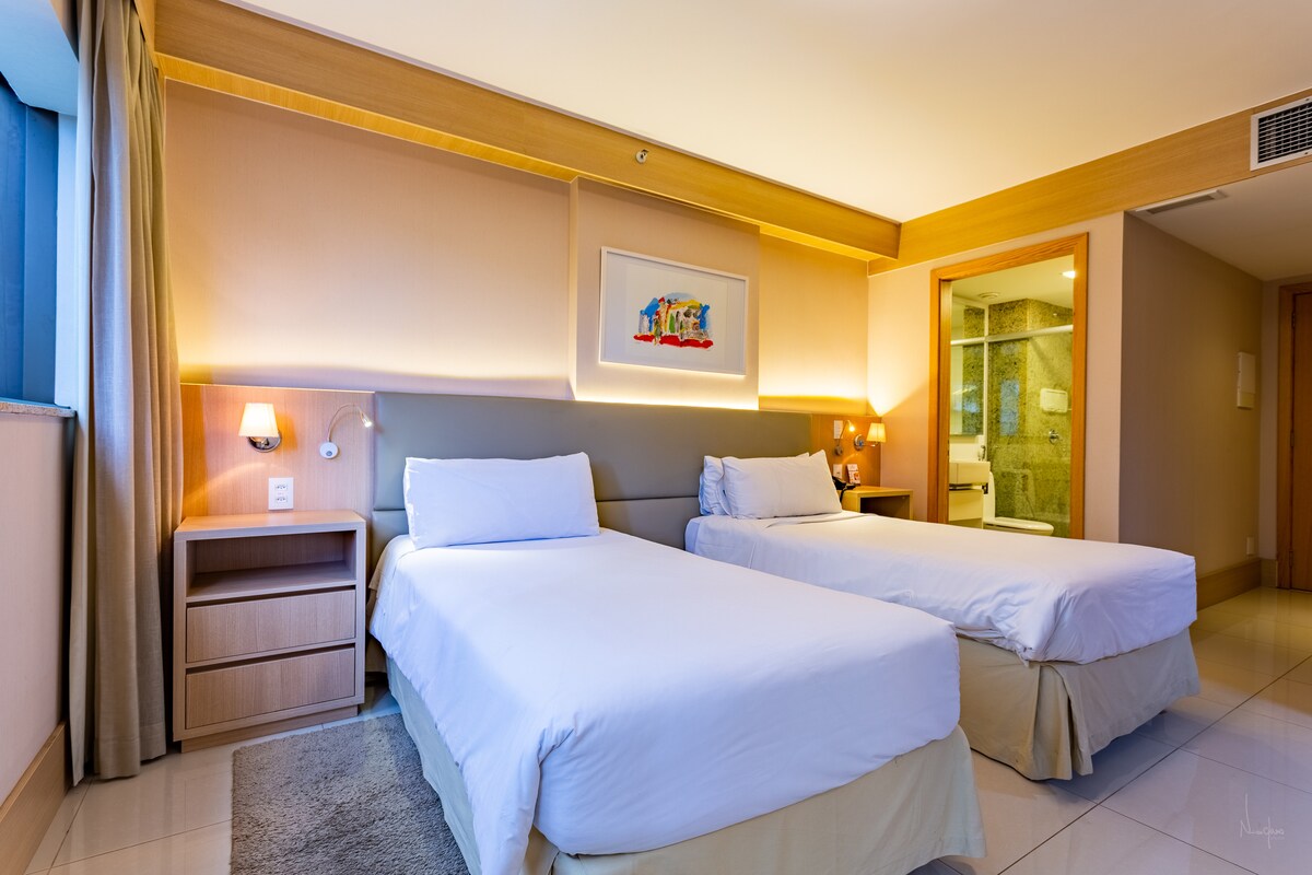 Doskonały apartament w hotelu Cullinan (5 gwiazdek)! W pobliżu Esplanada dos Ministérios, sektora handlowego, centrum kongresowego, centrów handlowych, parku miejskiego, siłowni i stadionu narodowego, bardzo dobrze położony. Kompletne wyposażenie: telewizja kablowa, Wi-Fi, minibar (bez napojów), kuchenka mikrofalowa, ekspres do kawy, przybory kuchenne, dwa pojedyncze łóżka, basen, sauna, siłownia i restauracja. Apartament posiada również przestrzeń roboczą zaprojektowaną do pracy zdalnej. Skorzystaj z tej okazji!