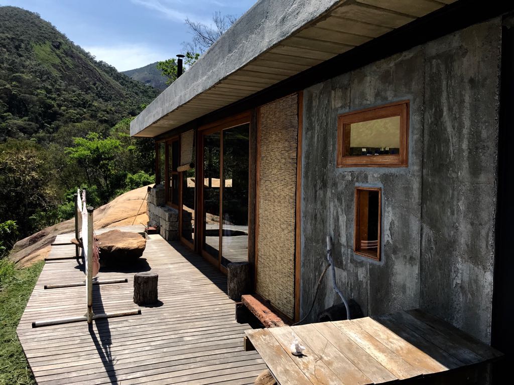 Miejsce, w którym możesz naprawdę oderwać się od świata i ponownie połączyć się ze sobą/innymi. In Vale das Videiras designed by the Brazilian artist , with a unique architecture where the home is built into the mountain side rock. Jest tu wyjątkowo cicho. Z domu roztacza się pełny widok na otaczającą dolinę, która ma bujną tropikalną zieleń. Nie ma tu Wi-Fi ani zasięgu komórkowego. Możesz nawiązać kontakt tylko ze sobą, swoimi partnerami podróżnymi i otaczającą Cię przyrodą.