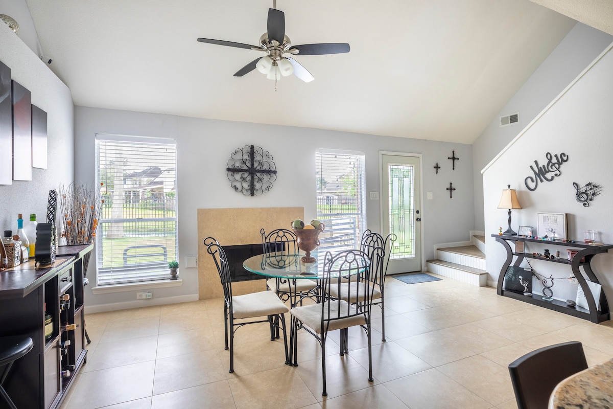 Whether you are traveling alone, as a couple or even as a family our peaceful guest house is ready for your stay. The house, located in the backyard of our main residence, is approx 600 sqft with a bedroom, living room and a full kitchen with a small fridge. The area is fully fenced in for privacy along with a patio and furniture. We are less than 10 minutes from SH 288, 45 min from the beaches, 30 min from Texas Medical Center, 15 min from Pearland Town Center, 20 min from SkyDive Spaceland