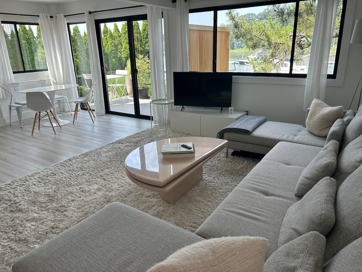 Położony w South Freeport, ten apartament z 1 sypialnią sprawia, że wszystko jest w zasięgu ręki. Niezależnie od tego, czy chcesz odpocząć/pracować, pijąc kawę na patio lub w salonie z widokiem na wodę, jest to bardzo spokojne i relaksujące miejsce. 5 minut od słynnej Mili Morskiej, gdzie można cieszyć się różnymi restauracjami, przejażdżkami łodzią i innymi atrakcjami, kilka minut od Southern State i Meadowbrook Parkway, 15 minut od Jones Beach. W pobliżu różnych uniwersytetów. Klimatyzacja również w sypialni
