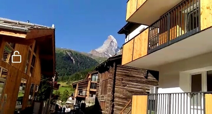 Modern, bright, warm and comfortable apartment, close to all amenities and to the funicular which takes you to the ski slopes in just 5 minutes. Exceptional views of the Matterhorn from the bedroom (even from the bed), the living room, the office area and of course the balcony, which is accessible from both rooms. Modern amenities: secure Wi-Fi, two large flat-screen TVs, Bose dock, etc.