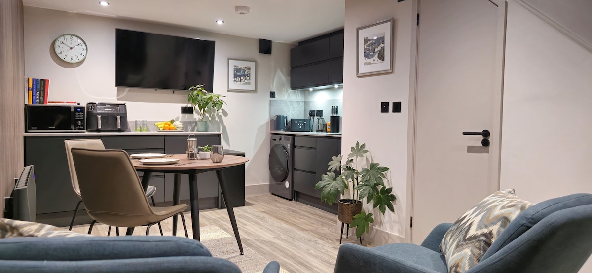 Masz ochotę na przerwę od ruchliwego życia w mieście, zmianę otoczenia lub po prostu naprawdę miłe miejsce na pobyt podczas pracy poza domem? W takim razie nasze miejsce jest właśnie dla Ciebie. Witamy w Work, Rest & Play, naszym samodzielnym mieszkaniu gościnnym położonym w sercu Glass Quarter, w odległości spaceru od urokliwego miasteczka Stourbridge. Będziesz mieć własną przestrzeń z dużą jadalnią/salonem, sypialnią z łazienką, kuchnią i dostępem do naszego zaprojektowanego ogrodu z sauną opalaną drewnem, piecem do pizzy i grillem.
