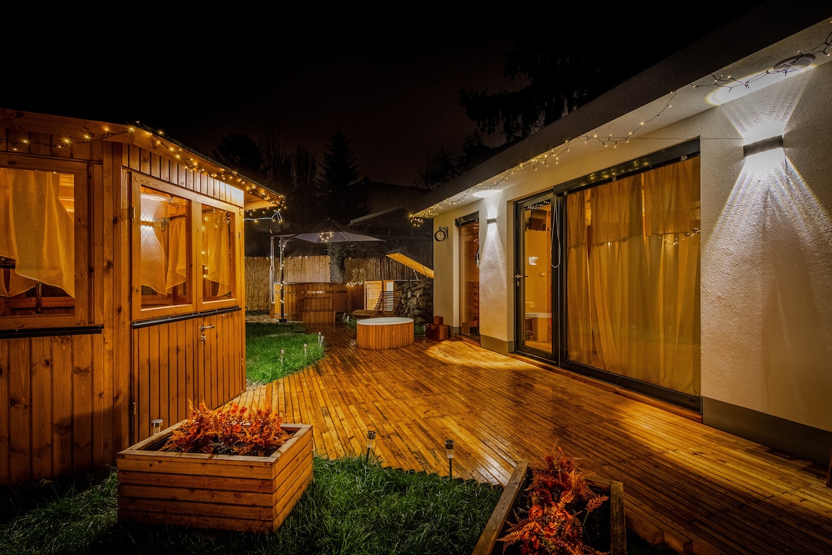 Ciesz się romantycznym zakwaterowaniem wellness w odosobnieniu pośród winnic z panoramicznym widokiem na zamek i pałac Dolní Kounice. Na zewnątrz znajduje się jacuzzi, sauna, staw kąpielowy (odpowiedni również do terapii zimną wodą), grill zewnętrzny i miejsca do siedzenia, w tym kominek. Wewnątrz znajduje się w pełni wyposażona kuchnia, łazienka i pokój z luksusowym łóżkiem hotelowym, które zapewnia maksymalny komfort.