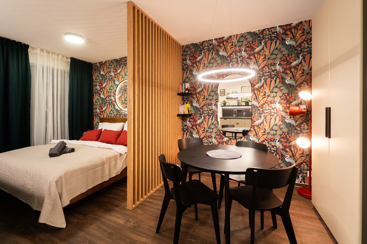 PASÁŽ KOLIŠTĚ to elegancki, nowo wyremontowany budynek wielofunkcyjny w samym centrum Brna (Teatr Mahen 280 m), w pobliżu międzynarodowego dworca autobusowego i kolejowego. Jest to strategicznie korzystne dla wszystkich naszych gości. Mieszkanie inspirowane tropikalną dżunglą i wyposażone tak, abyś czuł się komfortowo, bezpiecznie, jak w domu :). Kładziemy nacisk na czystość, bezpieczeństwo i przyjazną komunikację. Śniadanie i brunch zgodnie z menu. Mamy jeszcze 11 apartamentów w ofercie, skontaktuj się z nami!