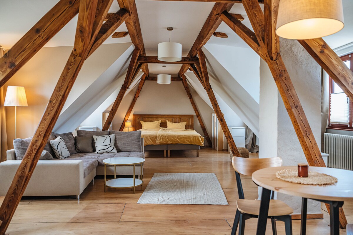 Podatek turystyczny jest wliczony w opłatę za rezerwację. Jeśli podróżujesz służbowo, skontaktuj się ze mną, a wyślę Ci ofertę gospodarza, ponieważ nie musisz płacić podatku turystycznego. Zatrzymasz się w pięknie odnowionym apartamencie z tarasem na dachu na wyższym piętrze w starym domu osadniczym. ( oryginalne schody w górę) Możesz cieszyć się komfortem i wspaniałym klimatem w apartamencie wyczyszczonym gliną i słomą. Masz ochotę na tę wyjątkową atrakcję? Dziękujemy za rezerwację.