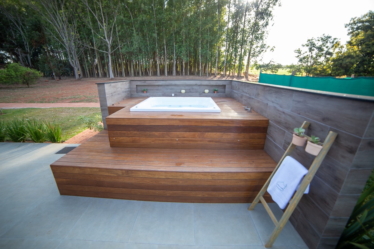 Przeżyj niesamowite dni w tym przestronnym i wyjątkowym miejscu. O Chalé znajduje się w zachowanym lesie 15 min. od centrum Brotas, 10 min. od Raceville i 2 min. pieszo do Viva Brotas - ciesz się wycieczkami w tym parku bez konieczności jazdy samochodem! Mamy widok na piękne jezioro z wędkowaniem i kajakami, szlakiem wodospadów - oba na terenie nieruchomości, z bezpłatnym dostępem dla gości. Pełna kuchnia, łaźnia SPA i widoki na przyrodę ze wszystkich pokoi dopełniają atrakcji. Czekamy na Ciebie!